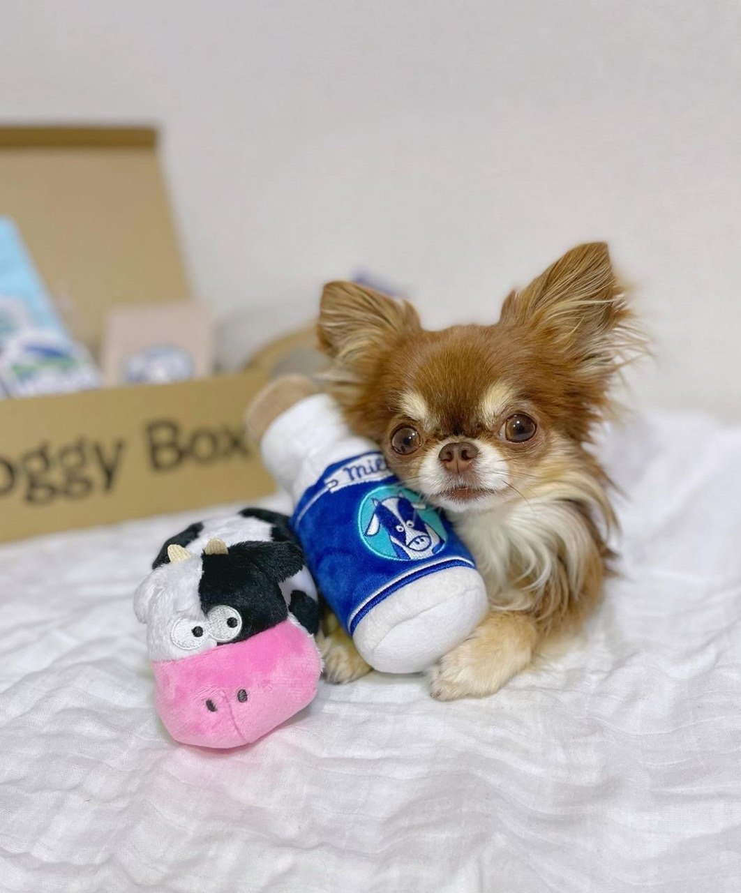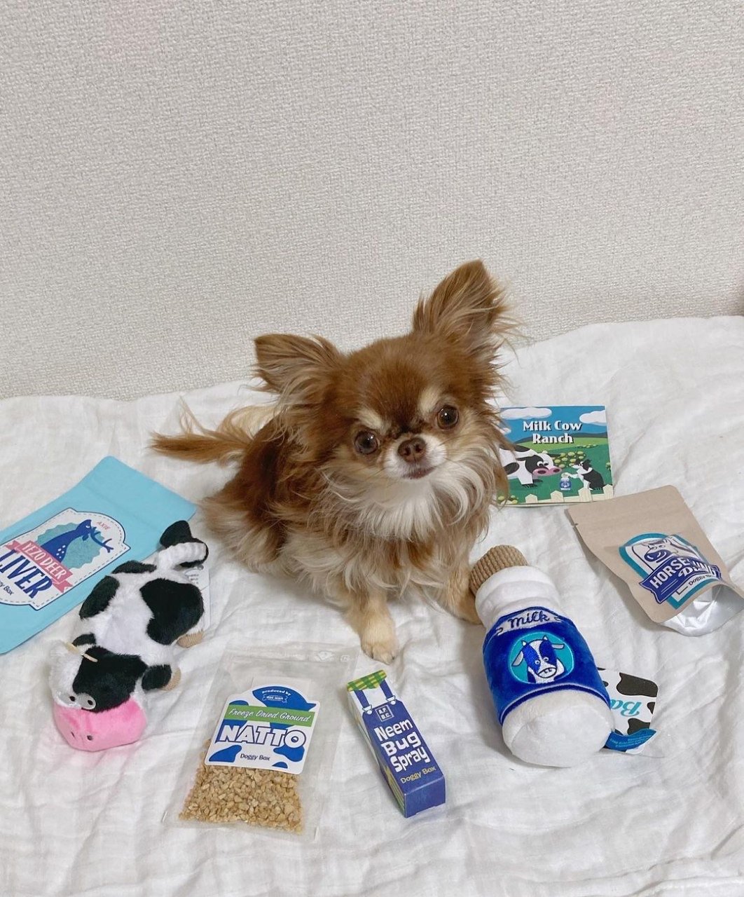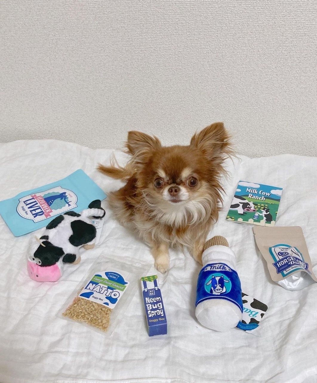 He’s shown here with her goodies—proof of how well-cared for and pampered she is!